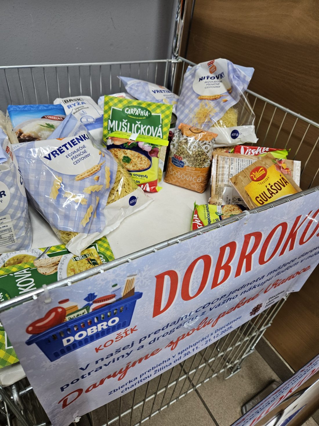 V adventnom čase sme v spolupráci so spotrebným družstvom COOP Jednota zorganizovali zbierku potravín a drogérie – DOBROKOŠÍK. Do tejto krásnej iniciatívy sa zapojilo 25 farských charít, ktoré darované potraviny rozdali ľuďom v núdzi a pomohli im tak aspoň trochu prežiť štedré a pokojné Vianoce.