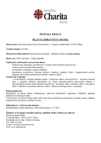 Hlavná zdravotná sestra PONUKA PRÁCE DCHK Júl2024_page-0001
