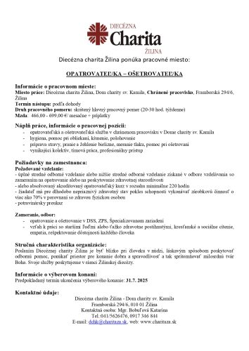 PONUKA PRÁCE OPATROVATEĽ – OŠETROVATEĽ DCHK 072025_page-0001