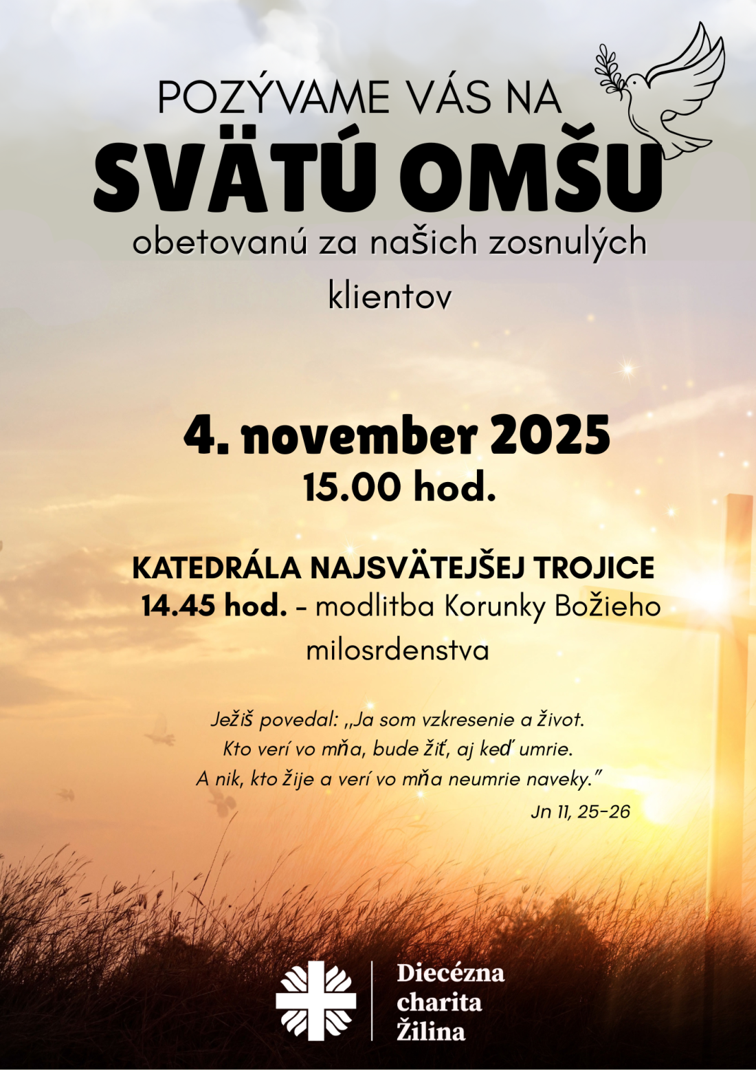 Priatelia, 4. novembra sa budeme spoločne modliť za našich zosnulých klientov a venujeme im tichú spomienku. Pridajte sa k nám.