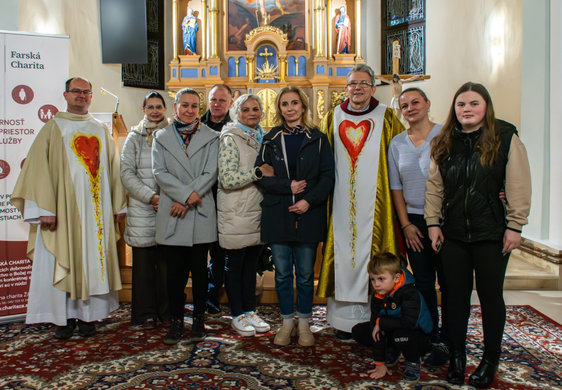 Dobrovoľníci oslávili túto udalosť ďakovnou svätou omšou, na ktorej pán kaplán DCHZA Michal Melišík predstavil činnosť a dielo farských charít. Po svätej sme boli pozvaní na agapé, na ktorom sa zúčastnili aj starostovia obcí Dolná Tižina a Stráža. Zjednotení spoločnou túžbou po dobre ľudí z farnosti hľadali nové formy podpory a pomoci trpiacim.