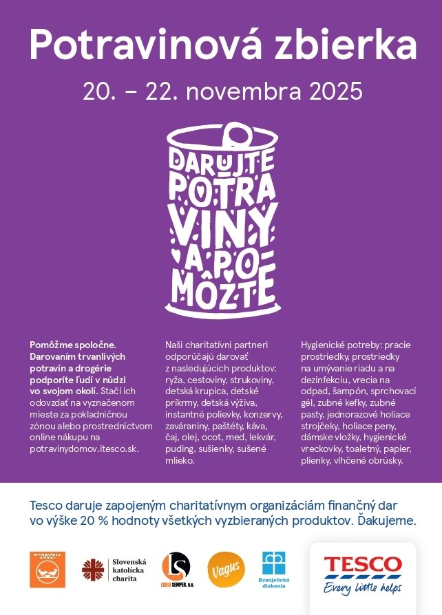 Diecézna charita Žilina pozýva 20. – 22. novembra podporiť núdznych v rámci tradičnej Potravinovej zbierky trvanlivých potravín a drogérie. ![]()