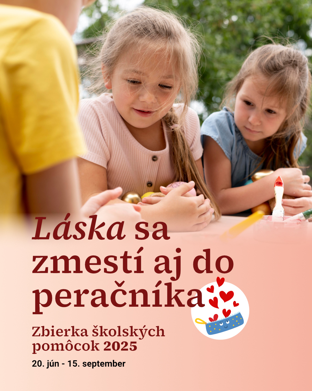 Priatelia, práve dnes končí školský rok 2024/25 a my už myslíme na ten nasledujúci, na ktorý sa chceme pripraviť. ✂️📌 Známou rečou klasika by sme mohli povedať, že deti sú naša budúcnosť, a preto je dôležité podporiť ich vzdelávací proces. K vzdelávaniu potrebujú nielen pevnú vôľu, odhodlanie a motiváciu, ale i pomôcky, vďaky ktorým sa výučba môže realizovať. Poďme spoločne spojiť sily a dať deťom prostriedky pre ich rast a sebarealizáciu. Celoslovenskú zbierku môžete podporiť prostredníctvom odovzdania školských pomôcok priamo na svojich zberných miestach v našich zariadeniach, cez farské charity alebo cez darovací portál darujme.sk, kde zadáte individuálny príspevok podľa svojich možností. Darujme deťom lásku spoločne. ❤🥰👈